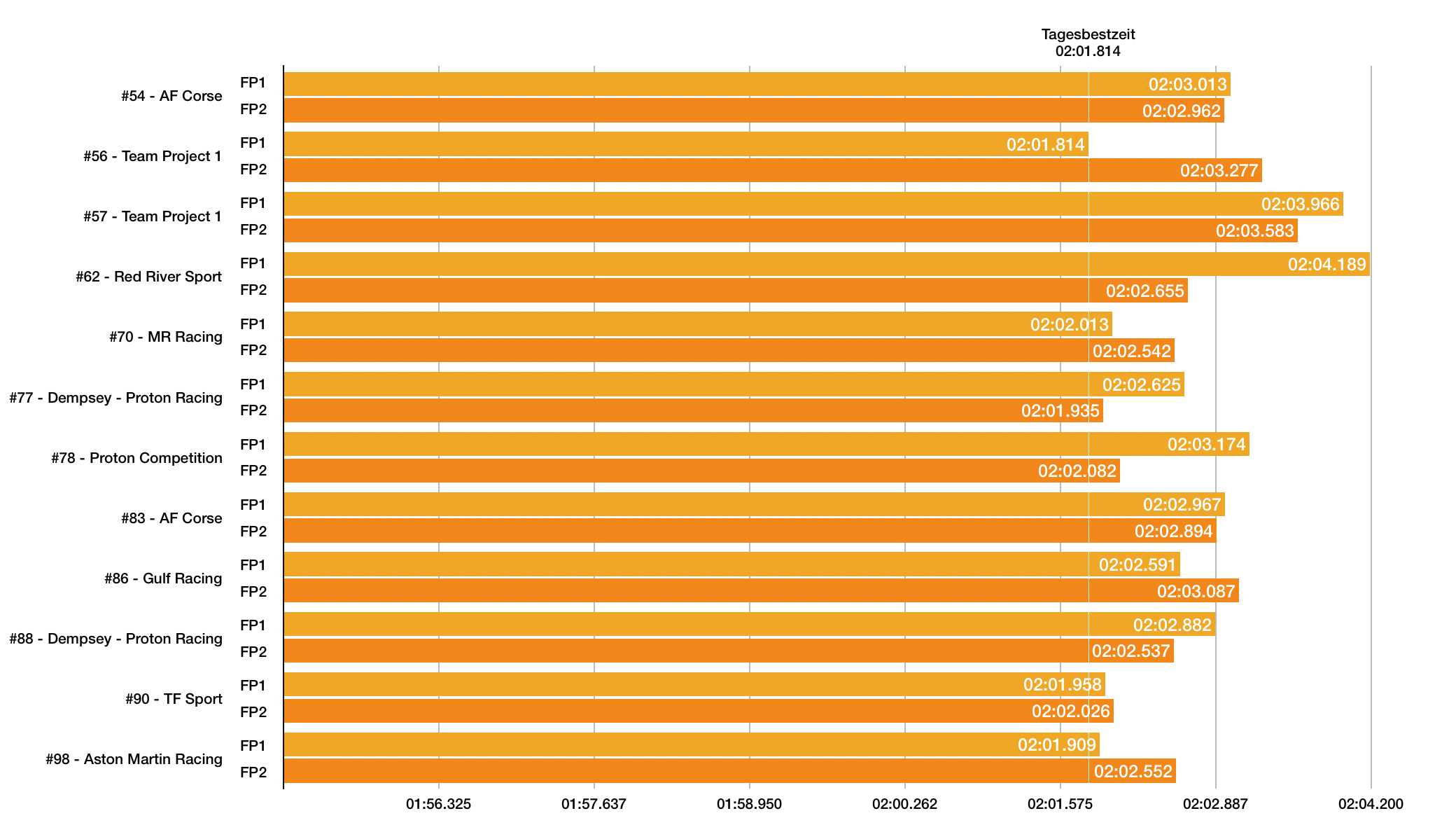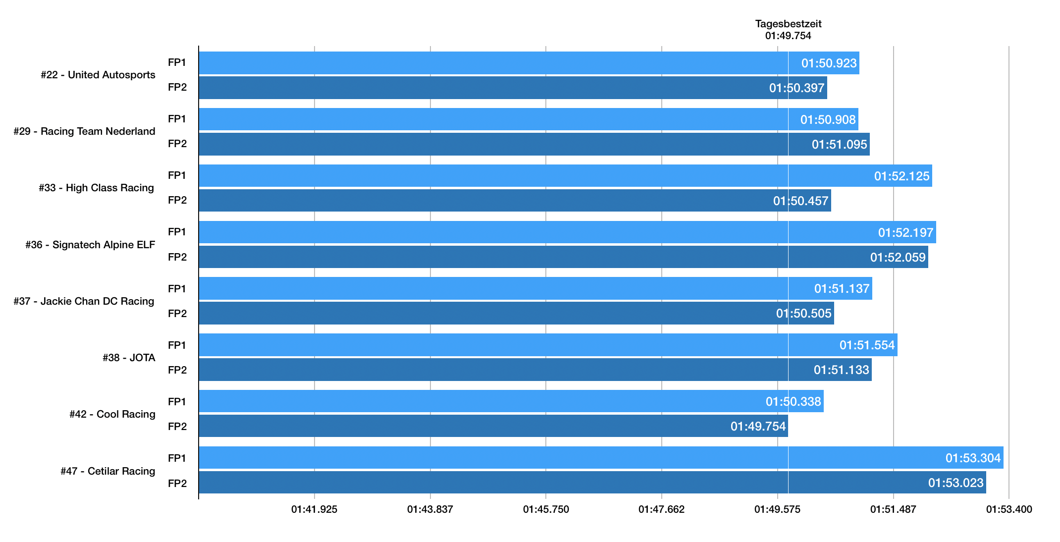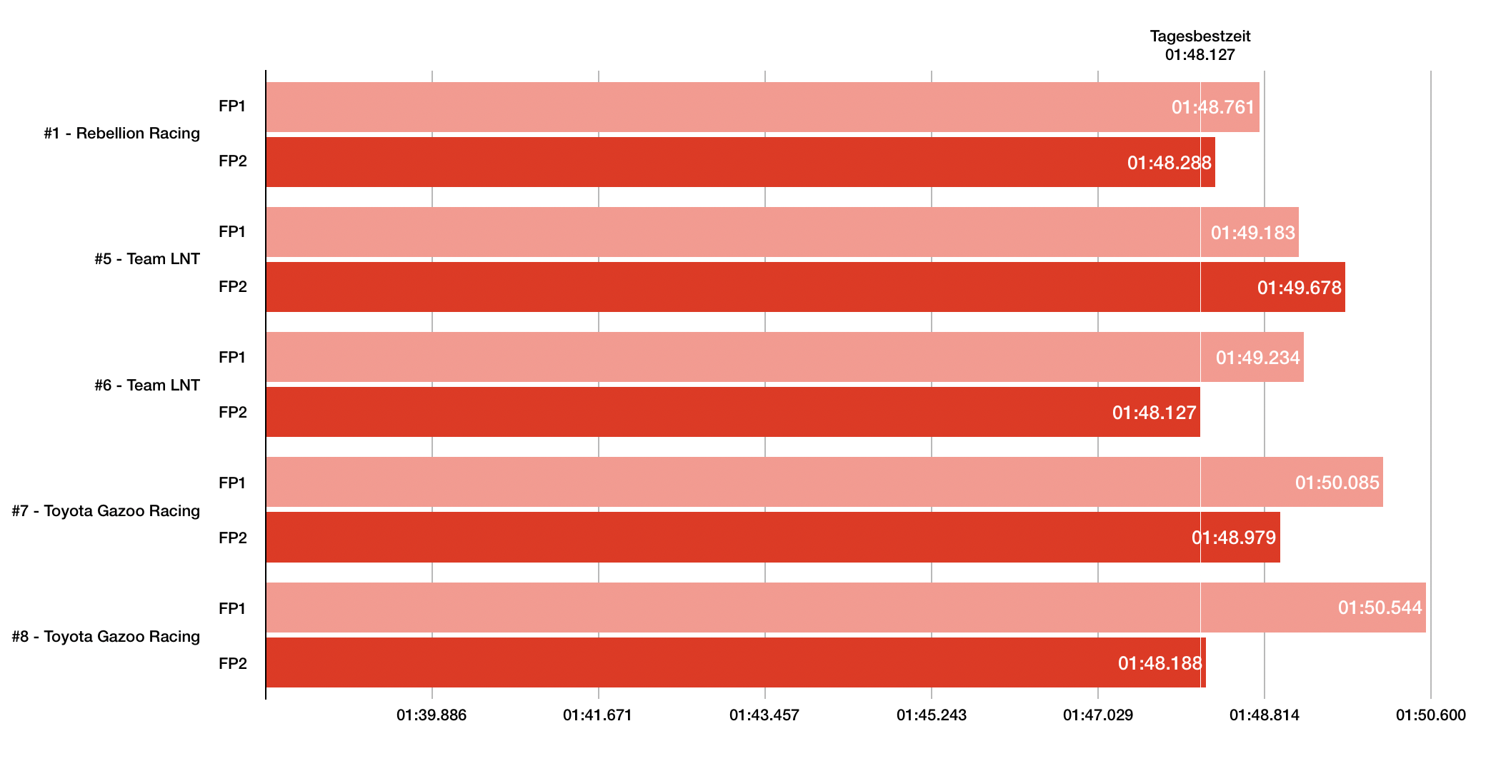 With the new success handicap system now taking full effect, the WEC appears to have succeeded in lowering the gap between the works LMP1 hybrids and the privateer-run machines. Here is an overview of the lap times from FP1 and FP2: