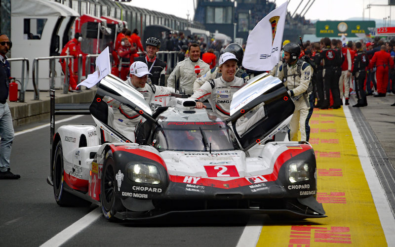 The Porsche team had shown solid pace in free practice, but were second-best to the Toyotas in qualifying and started from second and third on the grid. The #7 Toyota TS050 of Kamui Kobayashi, Mike Conway and José-Maria Lopez defended its lead in the first third of the race but suffered a loss of pace from the halfway point, with what proved to be bodywork damaged caused by the Nürburgring curbs.