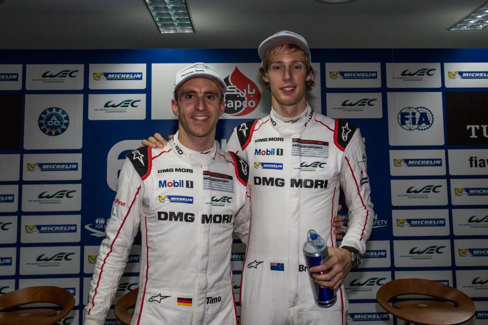 Timo Bernhard, Brendon Hartley and Mark Webber need to finish third in tomorrow’s 6 Hours of Bahrain to take the drivers’ title, and the trio ensured they have the best possible starting point by taking pole in the 20-minute qualifying session. Bernhard, Hartley and Porsche teammate Marc Lieb in the #18 machine were the only drivers to break the two-minute barrier in a relatively quiet qualifying session.